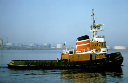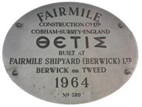 TugsA variety of small tugs were built at Berwick following the revival of shipbuilding in 1950. Many would be destined for work service overseas.The first tug to be built at Berwick was a 53-ton vessel Maamal built for the Port of Aden Trust and launched in September 1951. Contemporary accounts describe how with minutes to go before the launch ceremony workmen were still welding, hammering and painting while others were preparing the bogies. Powered by a 250 h.p. Blackstone engine and propelled by a single four-bladed propellor, Maamal developed a steady static pull of 4.75 tons while on trials. A further six tugs were built during the 1950’s, almost all of them for overseas customers. Felicidade left Berwick by trailer in August 1952 bound for Liverpool before being shipped to Recife, Brazil where it entered service with Wilson and Co. The design followed conventional lines apart from the fact that headroom had to be restricted to allow the vessel to pass under low bridges when in service. Power was provided by a 120 h.p. four-cylinder direct reversing engine that provided a top speed of 8 knots.British Guyana was the destination for an unnamed 48’ 6’’ long tug that also left Berwick by trailer in July 1956. Ordered by Booker McConnell the vessel was designed for working on the Georgetown harbour estates sugar run. The location of the yard meant a challenging start to the journey as the loaded trailer had to carefully negotiate tight bends at the end of the Old Bridge and at the top of Hide Hill before heading up Marygate and continuing southwards over the New Bridge as shown in the sequnece of photos below. Visible in the third picture of the sequence are the Berwick Advertiser Offices and the since demolished bus station. The bunting in the picture was erected for the visit to the town of Queen Elizabeth and Prince Philip on 10th July 1956.In 1957 the yard built two bigger tugs that were destined for Sudan. El Tigeel and El Kabir had an overall length of 74’ 10” and were powered by a Ruston Hornsby diesel engine capable of developing 313 b.h.p.. Both vessels were distinct in that they had a second elevated bridge designed to allow them to handle barges loaded to a considerable height with cotton. The hulls were also riveted to allow easy repair at Port Sudan if necessary.An unnamed 65” twin-screw diesel tug was constructed in 1958. The final tug built during this decade was the twin-screw Rolls-Royce-powered diesel vessel, Soldado Petrel, launched in February 1959. Soldado Petrel would see service in the West Indies with Texaco Trinidad. The West Indies was also the destination for a fire tug, Erif (‘Fire’ spelt backwards), built for the Kingston Harbour Authorities in Jamaica in 1961. Also powered by twin Rolls-Royce diesel engines the vessel was Fairmile designed with input from Fife Armour London Ltd, during what was a ‘boom’ period for the yard following the success of Fairmile in winning orders for ‘Fair Isle’- class fishing vessels and luxury yachts.* Soon afterwards orders quickly dried up and there were large-scale lay-offs sparking fears for the future of the yard. All was to change when the yard was successful in winning orders to build two tugs, Triton and Thetis for the New Corinth Canal Company. Seventy-three feet in length and powered by twin Crossley 362 h.p. engines both vessels had a static bollard pull of 12 tons and top speed of 11.5 knots. Completed in November 1964 and February 1965 Triton and Thetis were both still listed as under the ownership of the Company in 2021.During the mid 1960’s five small river tugs of between 20 and 24 feet in length were built for Kadur province in India. The final tug to be built at Berwick however, was also to be the biggest and most powerful. Leven Cross, built for the Tees Towing Company (see picture left), was launched from the slip on the 16th October 1970. At 93’ long and weighing 141 tons, Leven Cross developed 1,235 bhp. from two 6-cylinder Crossley CGL6 diesel engines. In addition to towing, Leven Cross was also designed for fire fighting and at one point was was operated by Cleveland County Council Fire Brigade and known as Cleveland Enterprise. Since then the former Leven Cross has undergone several further changes of name and ownership and in 2006 was Greek-owned and operating out of Piraeus as Agia Trias. In July 2012 the vessel changed hands once more and was based in Nigeria under the new name of Fendercare 7. This was followed by a further name changes to Africa Support 7 and Tamara Seriliemi. The vessel (IMO 7032911), was last located at Male Anchorage, Maldives in April 2020, by the ship tracking website, Marine Traffic. * Newcastle Evening Chronicle, 30th December 1960.